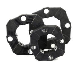 主要特性:用途广泛,各向弹性,可用于较大对中偏差的场合, 反作用力极小。花键、平键及其他要求均可。 应用范围:典型应用如柴油机驱动发电机、压缩机、泵、电马达,船舶推进,发动机测功机等。免维护,寿命长。 |